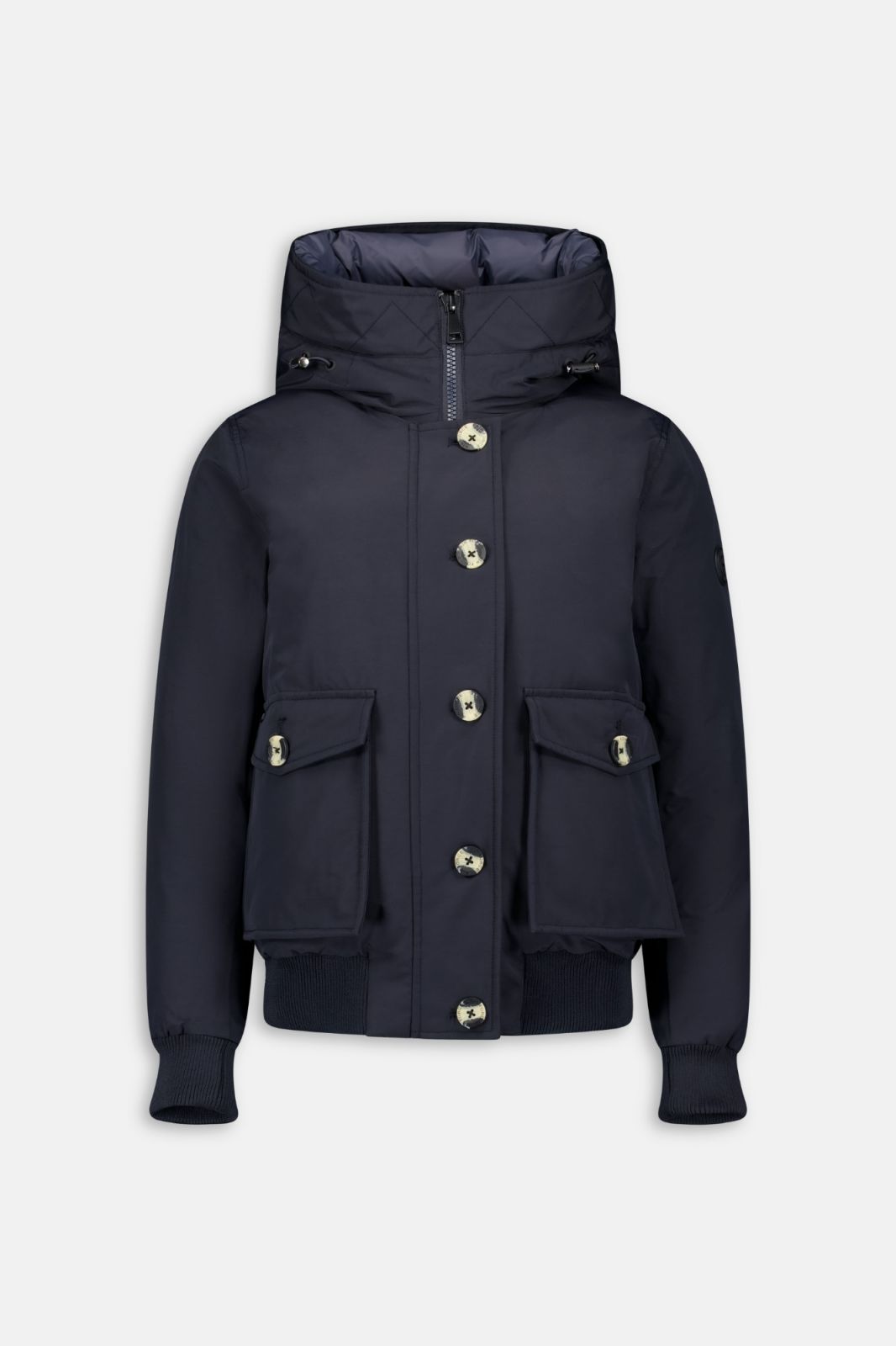 De 4 Pocket Bomber is een nieuwe jas binnen de Airforce collectie. Het is een kort model met een elastieke band aan de onderkant, wat zorgt voor meer warmte en comfort. De jas heeft 4 zakken aan de voorkant waarvan twee zakken af te sluiten zijn met drukknopen en twee zakken met een grote knoop. De Bomber jacket is voorzien van een capuchon die strakker getrokken kan worden en op de linkermouw zit een Airforce logo badge.