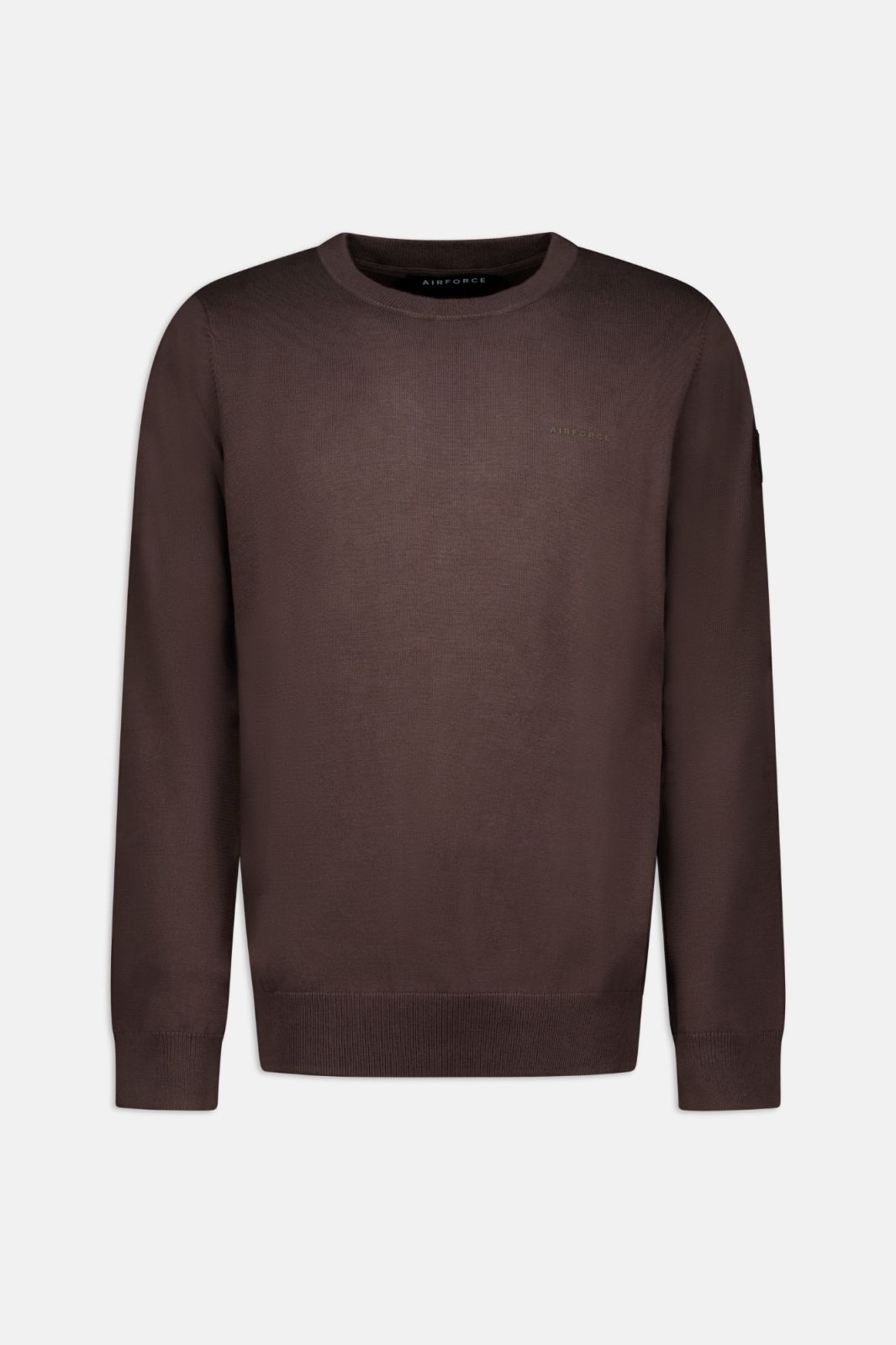 De Knitwear Round Neck combineert stijl en comfort met een klassieke ronde hals. Op de linkermouw bevindt zich een zwarte Air-Force logo badge, terwijl de linkerborst is afgewerkt met een subtiele, rubberen tone-on-tone 3D Air-Force print. De ribboorden aan de mouwen en onderzijde zorgen voor een comfortabele en aansluitende pasvorm.
