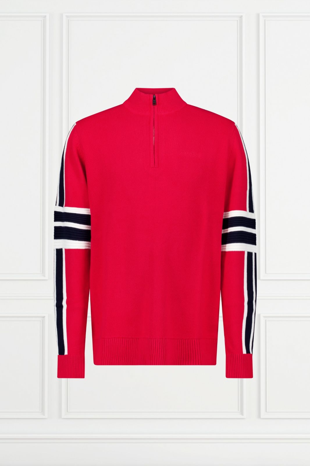 De Ski Cooper Knit is nieuw binnen de Airforce skicollectie. Deze pully is gemaakt van 100% biologisch katoen, wat zorgt voor een ademend en comfortabel draaggevoel. De pully beschikt over een hoge hals met een rits die tot en met de borst loopt. Deze pully is in meerdere kleuren beschikbaar. Het model is 1.89 meter en draagt maagt L.