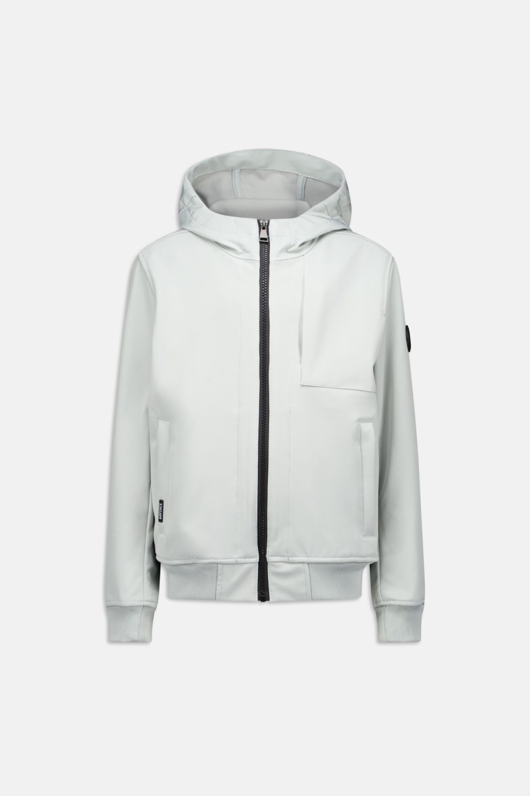 De Softshell Jacket Chestpocket is de perfecte voorjaarsjas. Gemaakt van waterafstotend en winddicht softshell materiaal, biedt deze jas optimale bescherming tegen lichte weersomstandigheden. De jas heeft een niet-afneembare capuchon en sluit met een ritssluiting. Op de borst zit een zak met verstopte ritssluiting, daarnaast heeft de jas twee steekzakken met ritssluiting, waarvan de rechter is voorzien van een Air-Force wording logo. De elastische boorden aan de mouwen en onderkant zorgen voor een goede pasvorm, en op de linkermouw zit een Air-Force logo badge.