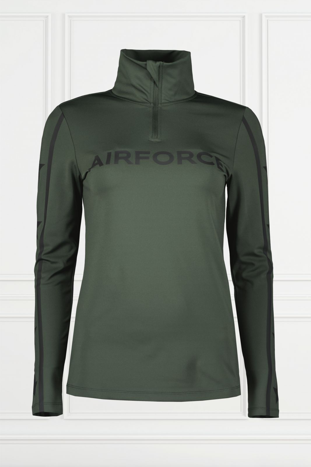 Met deze sterren pully maak je jouw ski outfit helemaal af! De pully zit zeer comfortabel vanwege de vele stretch. De pully heeft een hoge kraag met rits, op de borst zit Airforce logo wording en de zijkant van de armen sterren print. De pully behoudt jouw lichaamswarmte goed tijdens de wintersport.