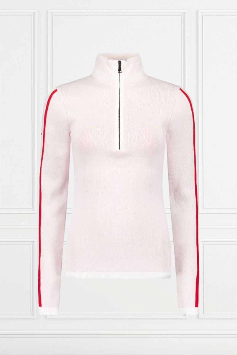 De Stella Star Knitted Pully heeft een hoge kraag met een rits tot op de borst en is ideaal voor koudere dagen op de piste. De pully sluit aan om het lichaam en heeft drie sterren op de mouwen. Verder biedt de pully een comfortabele pasvorm en is eenvoudig te combineren met andere Air-Force ski-items.