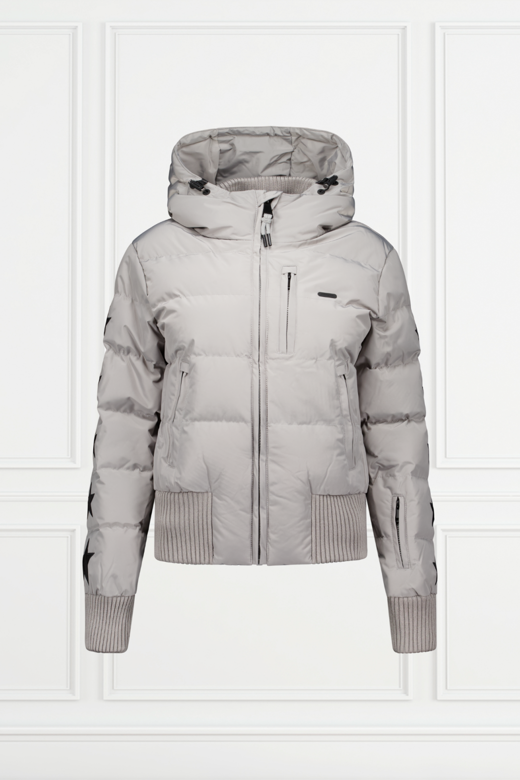 De Taos Jacket Star heeft een vaste capuchon en een hoge kraag die goed beschermt tegen wind en kou. De jas sluit met een rits en valt op de heup. Dankzij de elastische boorden aan de mouwen, taille en kraag sluit de jas mooi aan en blijft de warmte goed behouden. Aan de buitenkant heeft de jas twee zijzakken, een borstzak met ritssluiting en een skipasvakje op de linkermouw. Op de linkerborst is het Air-Force wording-logo subtiel aangebracht. Binnenin bevinden zich twee binnenzakken en een sneeuwvanger. De Taos Jacket Star is waterafstotend en windproof.